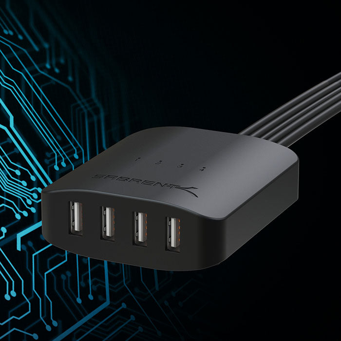 This Sabrent (USB-USS4) USB 2.0 Sharing Switch gives you the ability to operate four computers with a click of a button. The ability to seamlessly switch peripherals between computers can save you precious time. This device can help keep your work space clean and organized.