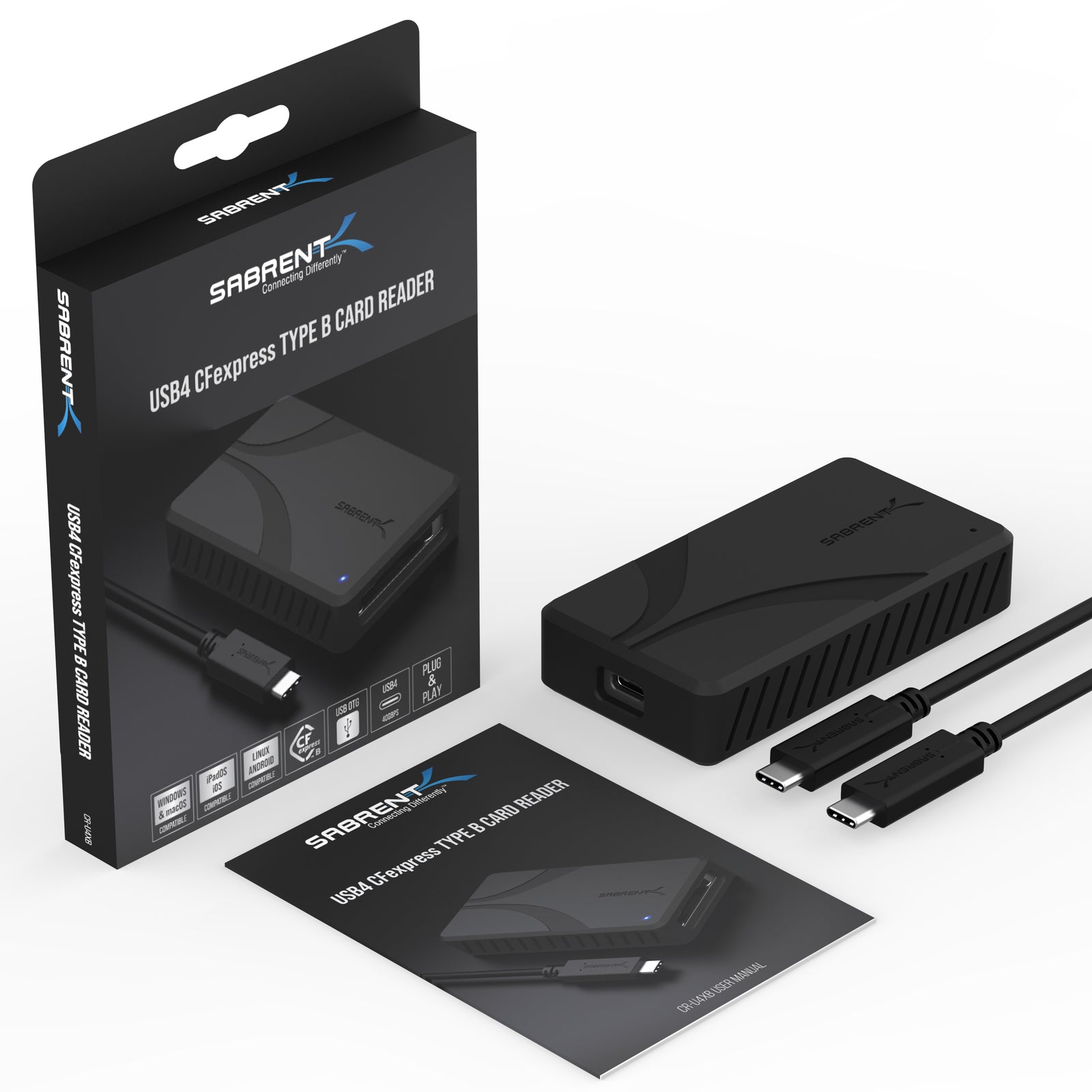 If you’re looking for the best, most reliable performance out of your CFexpress Type B cards, the Sabrent USB4 CFexpress Type B Card Reader (CR-U4XB) is for you. We’ve carefully designed this reader to be useful in a wide range of environments and with a large number of devices. Best of all, it can get the most out of your cards with USB4 technology at up to 40Gbps, or 3,500MB/s in real-world transfer speeds. It’s plug-and-play, bus-powered, and ready to go with OTG support. And not only will it go with you, it will last.