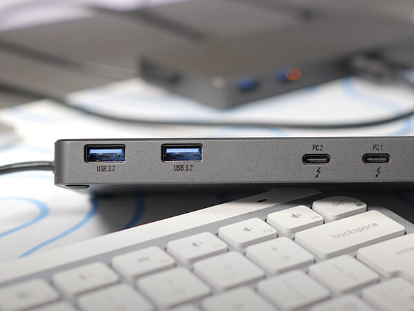 Share your Thunderbolt and USB devices between two host computers with high-res display output.