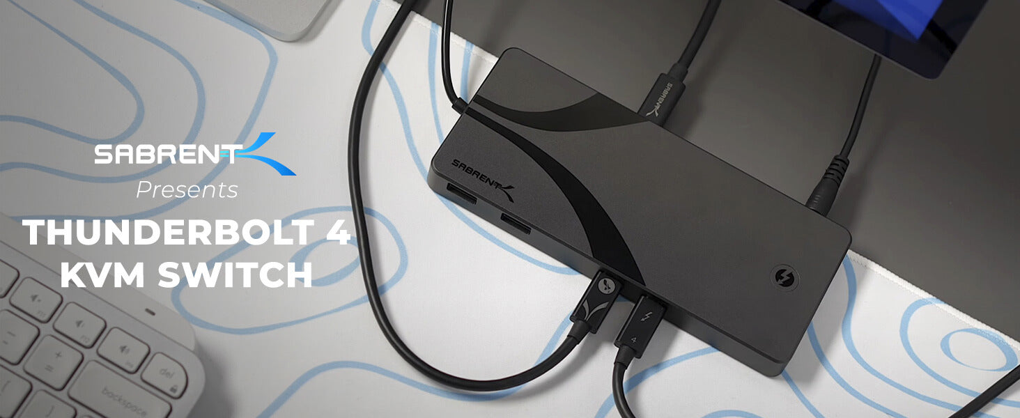 The sleek Sabrent Thunderbolt 4 KVM Switch (SB-TB4K) is here, ready to help you share your Thunderbolt and USB devices between two host computers with high resolution display output. It’s an easy way to maximize your productivity, for work or for play.
