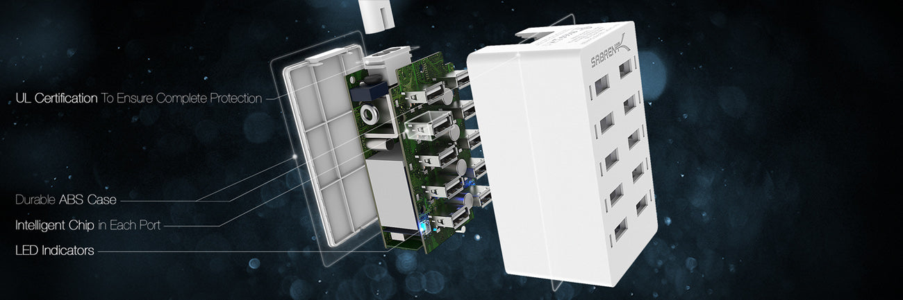 Our 60W (12A) 10-port smart USB rapid charger is UL certified.