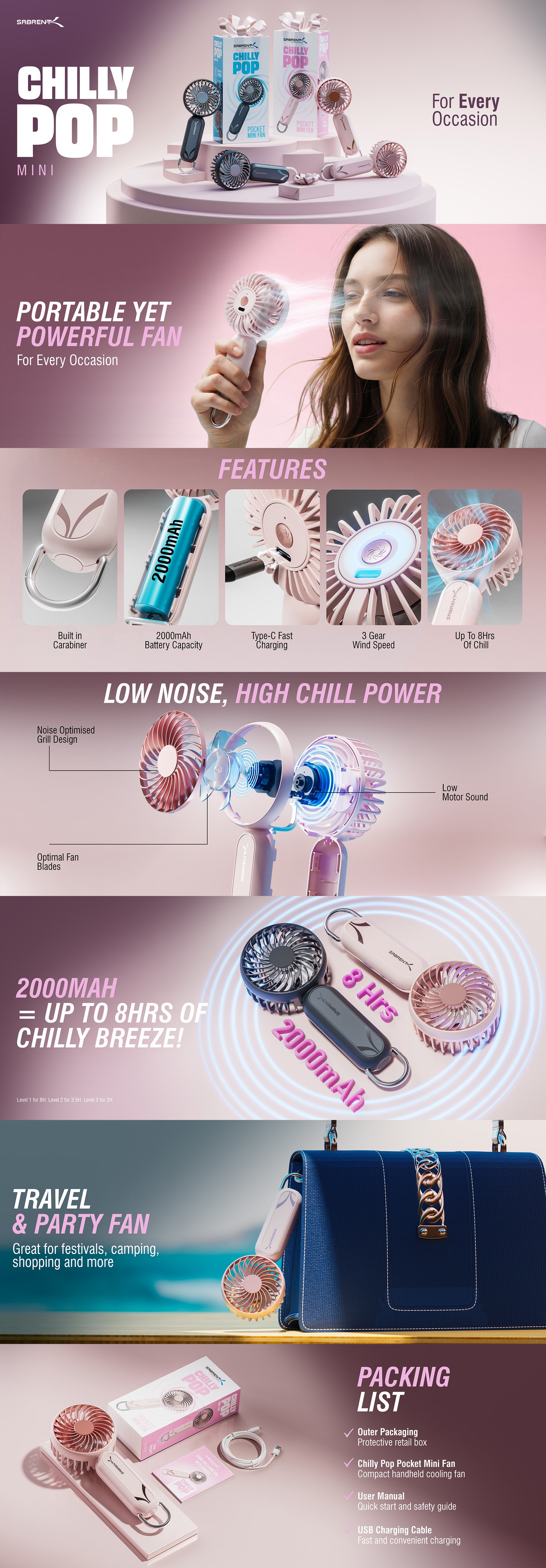 Use the ChillyPop Mini comfortably in hand or position it hands-free with the included metal hanger for flexible airflow wherever cooling is needed.